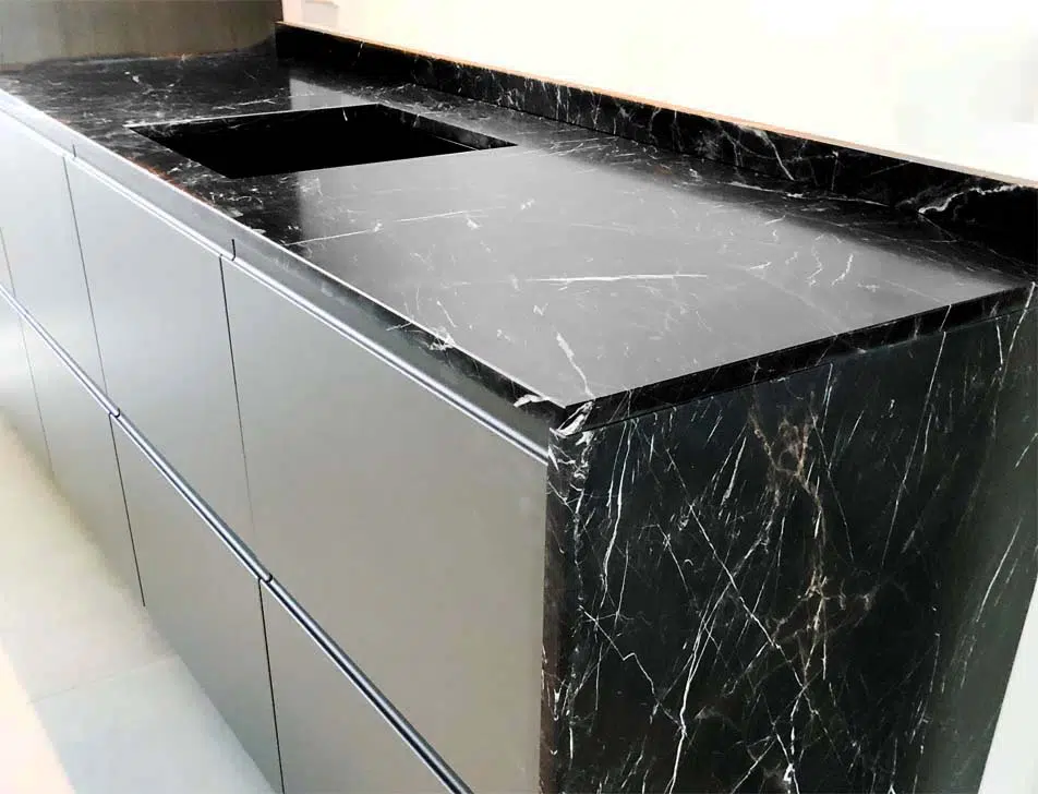 Natuursteen aanrechtbladen van de hoogste kwaliteit. Op maat gemaakt met vakmanschap en precisie voor een tijdloze uitstraling in uw keuken.