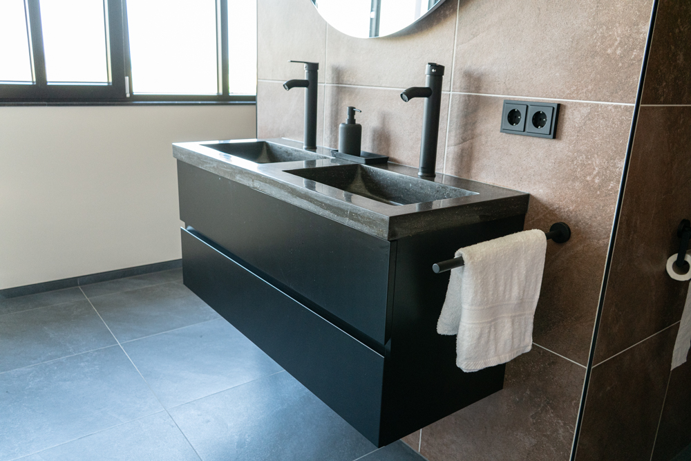 Natuursteen zoals marmer, leisteen, Belgisch hardsteen of graniet geeft je badkamer een exclusieve en tijdloze look. Elke steen heeft unieke kleurpatronen en nerven, wat zorgt voor een uniek design. Daarmee creëer je een warme, natuurlijke sfeer die niet te evenaren is met synthetische materialen.