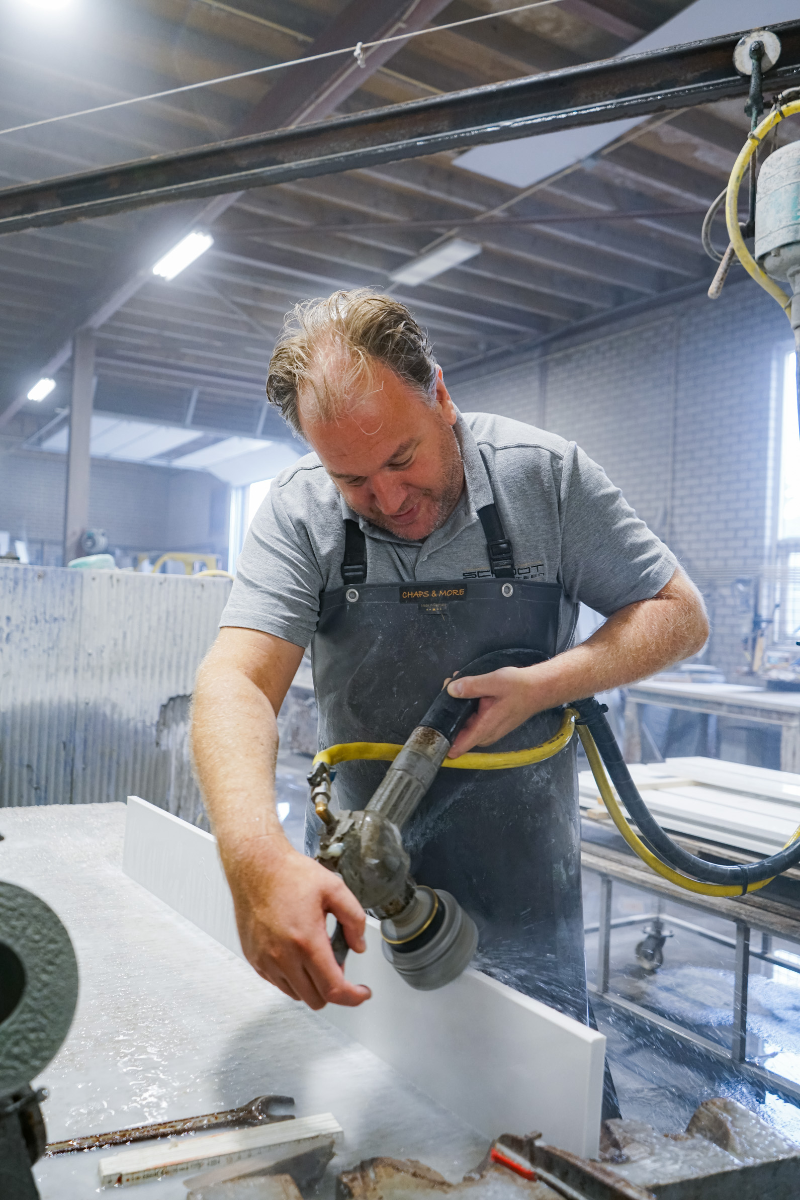De natuurstenen deurdorpels worden bijna volledig zelf geproduceerd in onze steenhouwerij in Nijmegen. Wij beschikken daarvoor over alle benodigde kennis en expertise, evenals de juiste apparatuur, om producten van hoge kwaliteit te leveren. Hierdoor kunnen wij maatwerk bieden en zorgen voor een perfecte afwerking, geheel afgestemd op jouw wensen.