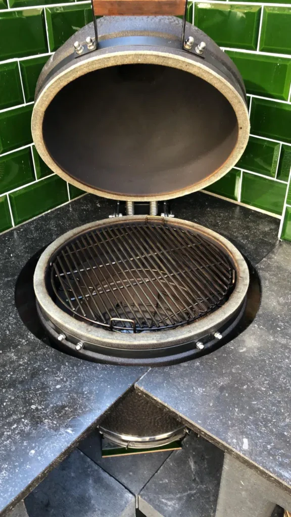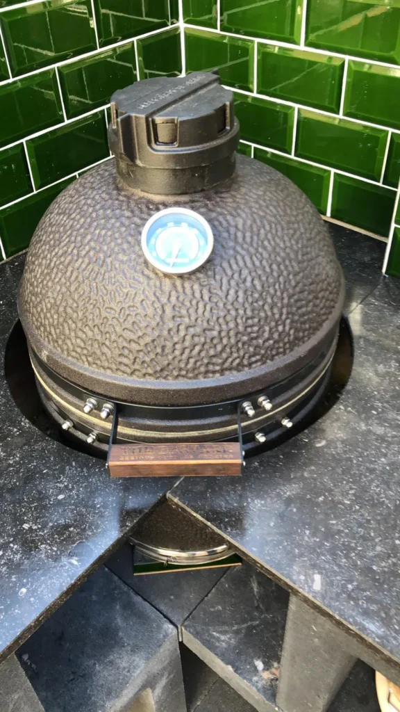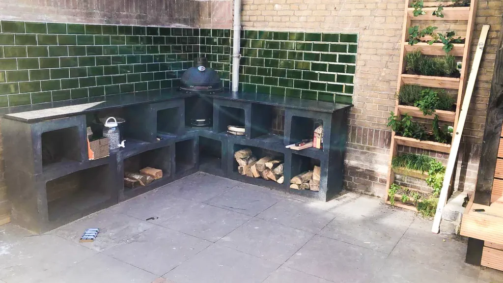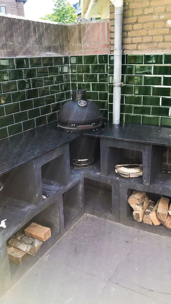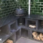 Ambachtelijke buitenkeuken met Belgisch hardsteen