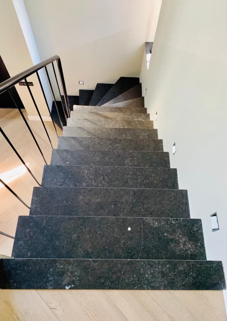 Voor een groot woningproject in Didam hebben we drie trappen op maat mogen maken. Deze traptreden zijn gemaakt van Belgisch hardsteen en zowel de treden als de stootborden zijn gezoet afgewerkt, om grip op de treden te creëren.