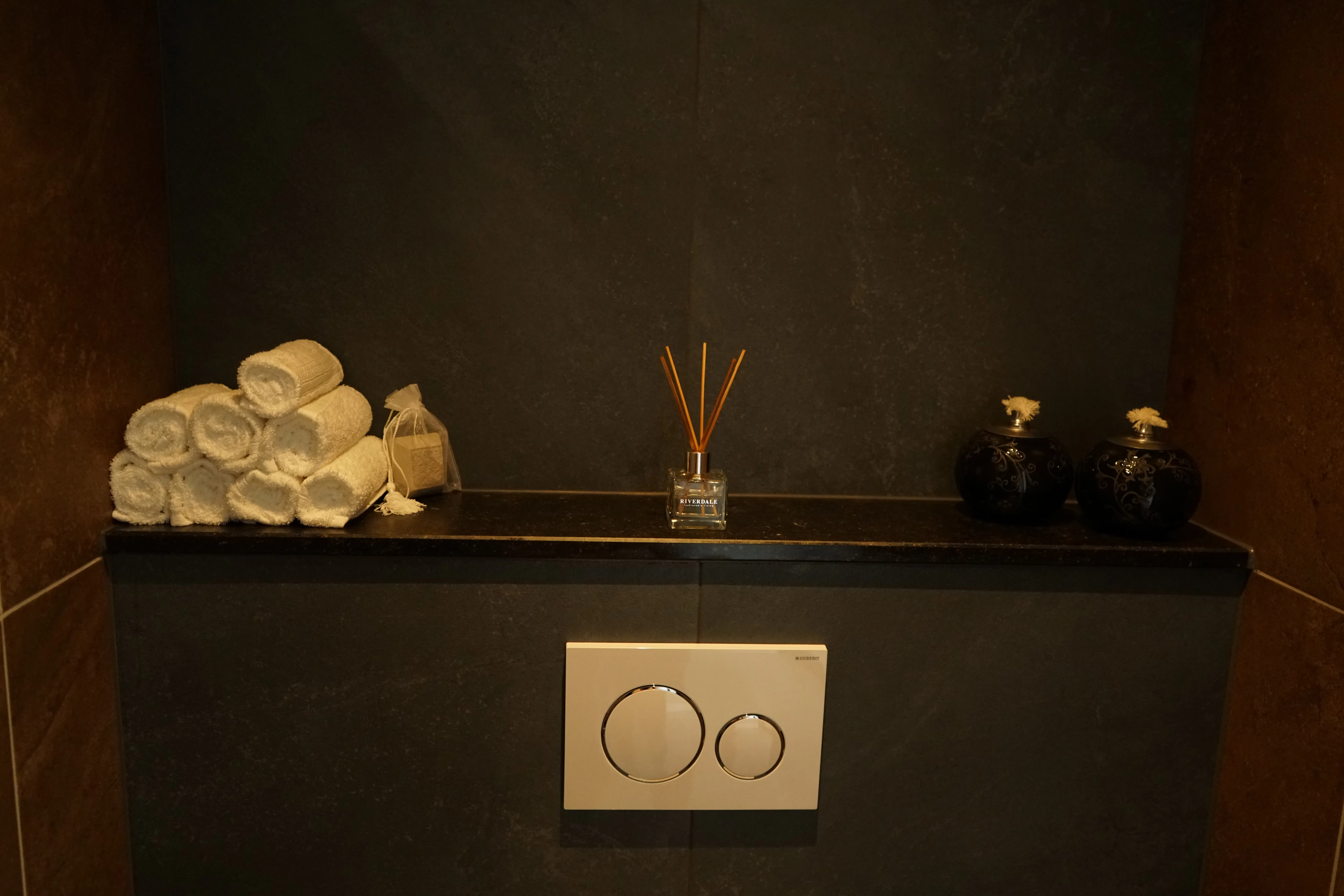 Bij de woningen in Didam hebben we de toiletten voorzien van Belgisch hardstenen schapjes (ook wel planchetten genoemd). Een natuursteen planchet voorkomt voegen en tegels die naar verloop van tijd vies worden, doordat een schap de uitsparing in de muur beschermt. Daarnaast is het de ideale afwerking voor het toilet, omdat het praktisch is en het geheel een chique uitstraling geeft.